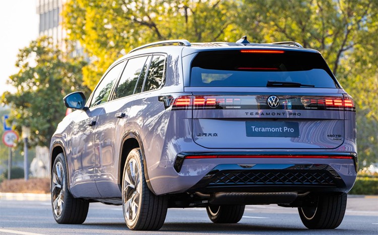 車尾繼續配備貫穿式尾燈組,只是尾燈光源更加簡約時尚,采用多層次的陣列式光源結構,中間帶有可發光的大眾車標,與車頭造型形成呼應。后包圍黑色裝飾采用網格設計,上方有紅色貫穿式反光條,排氣系統采用隱藏式布局,與整體風格形成統一。