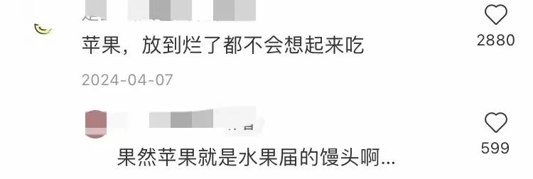 你們喜歡吃蘋果嗎。我懷孕的時候我婆婆愛買,但是我也是看見了都不想吃,寧可吃其他的水果。以前不知道為啥,現在明白了,水果界的饅頭,一般情況下沒人吃饅頭,除非餓了。