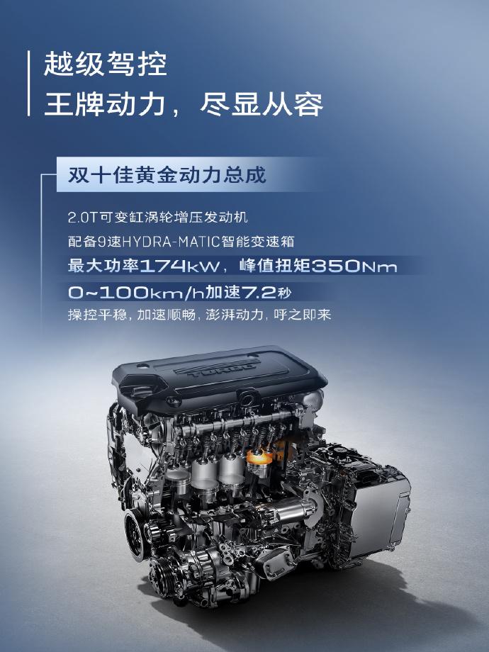 動力方面這輛車使用2.0T引擎匹配9速變速箱,零百7.2秒的數(shù)據(jù)對于家用來說很足夠了。