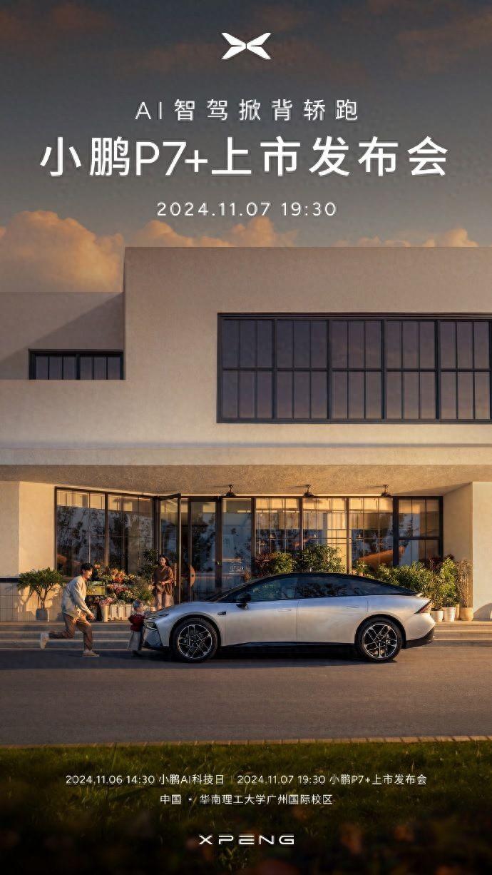 小鵬P7+亮相有段時間了,新車即將迎來正式上市,發布會定于11月7日。