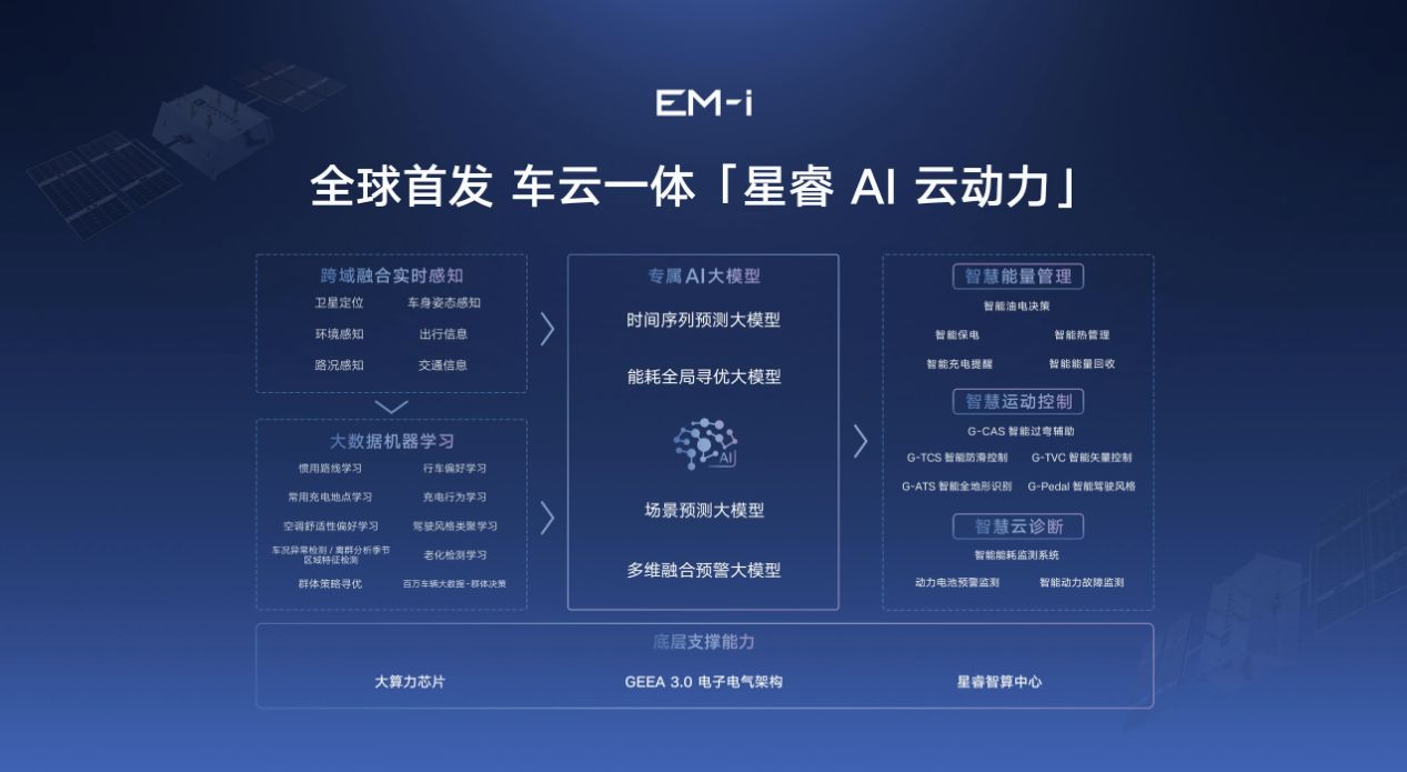 智能方面也實現了非常多的突破,吉利將AI技術應用至電混系統之中,實現全方位智能化管理。