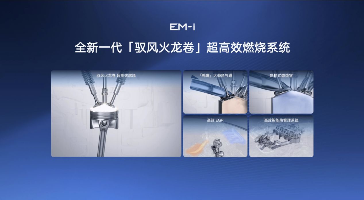 全新超級電混采用的是吉利自主研發的“馭風火龍卷”超高效燃燒系統,通過對進排氣結構的重新設計,燃燒室的改進,壓縮比的控制等等,將量產發動機的熱效率記錄提升至46.5%。
