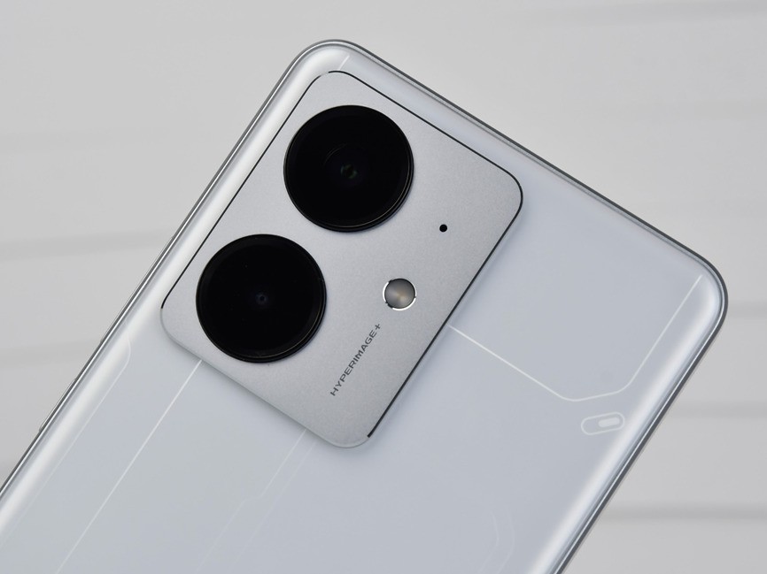 照例先從外觀設計看起,真我Neo7 SE此次為用戶帶來了三種配色,我們拿到的是白翼戰神版本,整體采用白色涂裝,機身背板刻畫科技感十足、硬朗線條圖案,機身四角都做了圓滑處理,長時間握持游玩時不硌手。