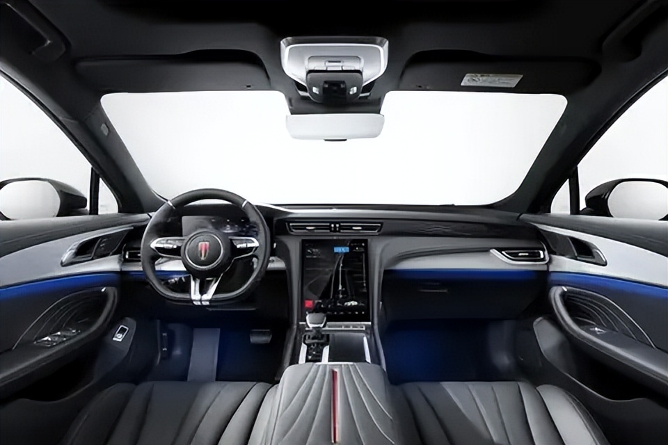 車內采用了大面積的軟性材質包裹,搭配木紋飾板和金屬裝飾條,質感出色。中控臺呈現出展翼環抱式座艙布局,方向盤為真皮材質,握感舒適且多功能按鍵的操作便捷。根據車款不同,配備7英寸液晶儀表和12.3液晶儀表,并標配12.6英寸中控大屏,內置紅旗智聯系統,支持車聯網、OTA升級,手機APP遠程控制、語音識別控制等功能,配合253色氛圍燈和8喇叭丹拿品牌音響提升了檔次感。