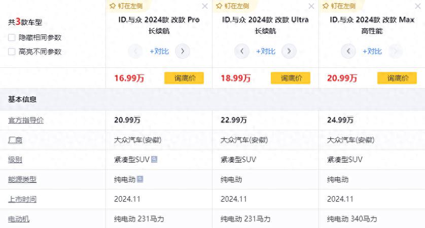 大眾安徽作為大眾汽車在國內市場建立的全新發展目標,旗下的首款車型定位緊湊級純電SUV,同時將其名為ID.與眾。與此同時,從實車的表現上來看,確實有點車如其名的意思,因為整車帶來的用車體驗確實是有點與眾不同。例如后驅版車型的最小轉彎半徑僅僅只有4.7米,而且入門版車型就給到了80.2kWh容量的大電池。不僅如此,為了提升消費者對大眾ID.與眾這臺車的興趣,官方還給出了4萬元的現金優惠,使得這臺車優惠之后的起步價來到了16.99萬元。