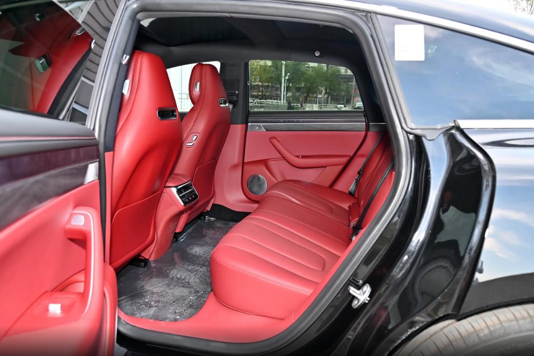 小米SU7則有著4997*1963*1455mm的身形尺寸,軸距為3000mm,從參數上看領先智界S7,車內座椅采用了更具運動氣息的一體式結構,并同樣采用仿皮面料進行包覆,同樣擁有飽滿厚實的乘坐感受,同時后排頭頂余量并沒有太受掀背設計的影響,保持了相對寬裕的乘坐表現。而在儲物方面,小米SU7提供了622L的行李艙容積,同樣能勝任日常的行李裝載。