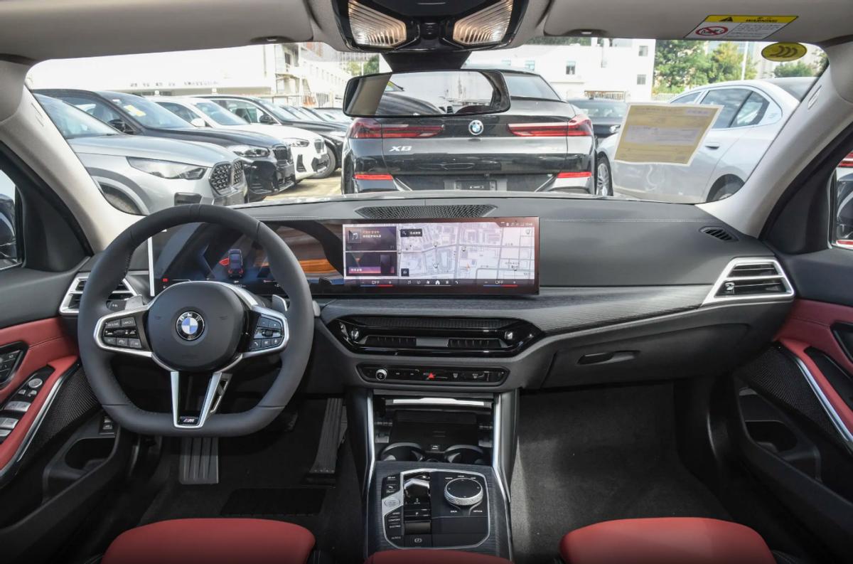 寶馬3系在改款車型中就將座艙換為了目前家族的主流設(shè)計,中控臺與扶手區(qū)域整體構(gòu)成了翼展式的T字造型,臺面包覆了軟性的搪塑材質(zhì),并在中部配有金屬或碳纖維的面板裝飾,出風(fēng)口、門板及把手區(qū)域則均加入了鍍鉻材質(zhì),讓車內(nèi)細(xì)節(jié)質(zhì)感也有所提升。儀表與中控區(qū)域搭載了一塊曲面雙聯(lián)屏,中央出風(fēng)口下方保留了簡約的旋鈕和按鍵,同時經(jīng)典的雞腿擋桿也換為了撥片設(shè)計,使得車內(nèi)視覺感保持簡約科技。