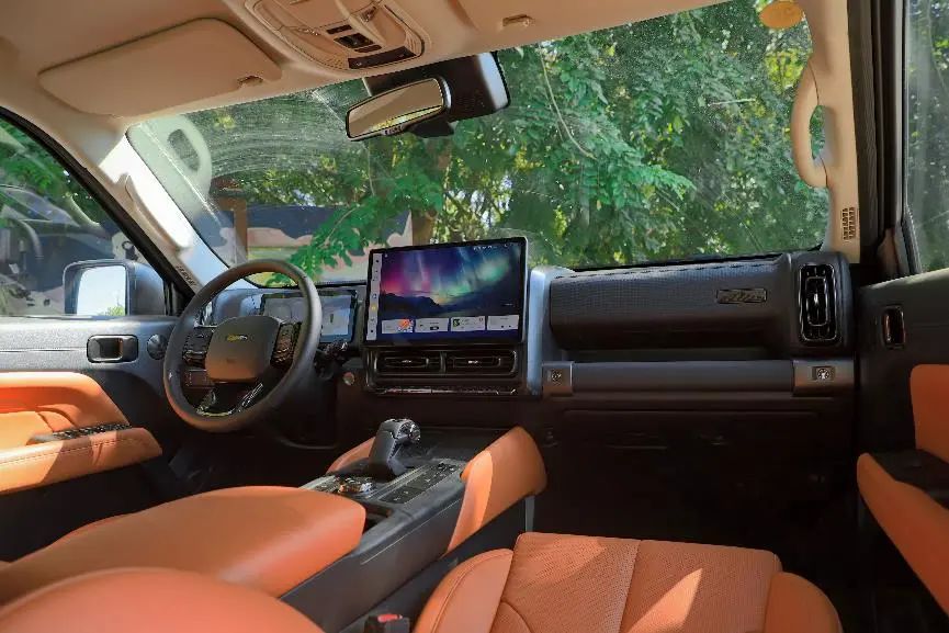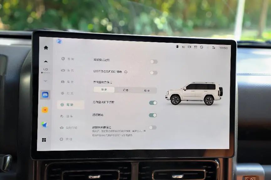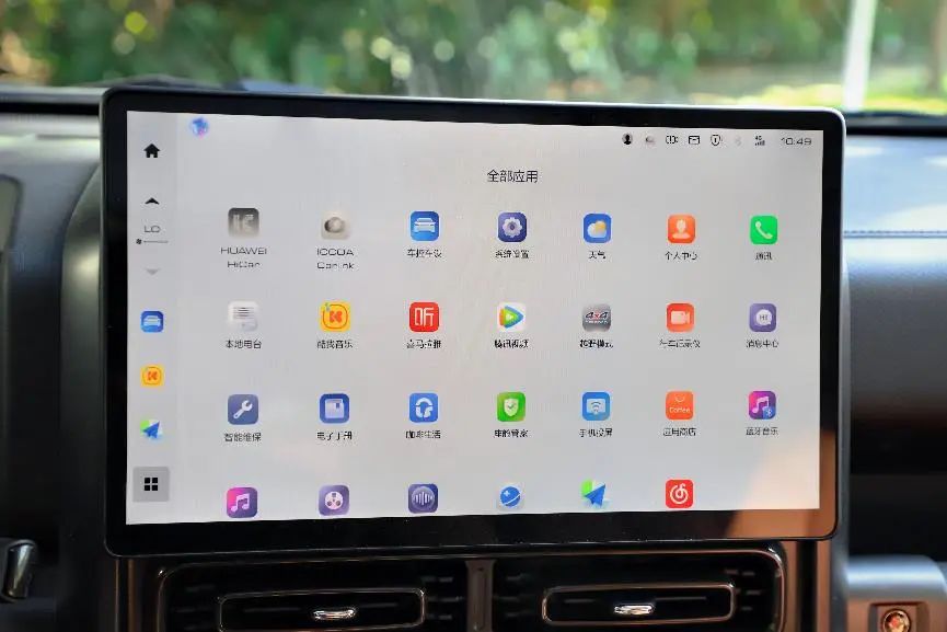 14.6英寸的中控屏,內(nèi)置了大量車輛信息和功能的調(diào)節(jié),在越野時打開越野模式也能夠顯示越野參數(shù)、車身姿態(tài)、海拔、氣壓、方向、胎壓、輪胎溫度等,支持HiCar的手機互聯(lián)及大量第三方app,整體的智能化體驗也屬于主流水平。
