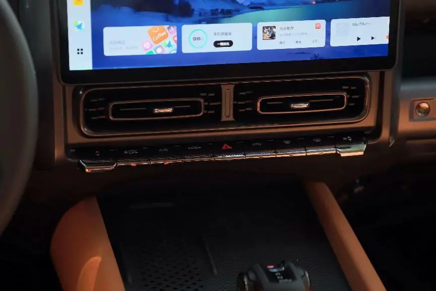 車內(nèi)保留了大量的實體物理按鍵,每一個按鍵布局足夠大,盲操十分便利,即便是北方冬季駕車佩戴著手套來點擊也很輕松。雙50W的手機無線充電面板使用起來也十分方便。