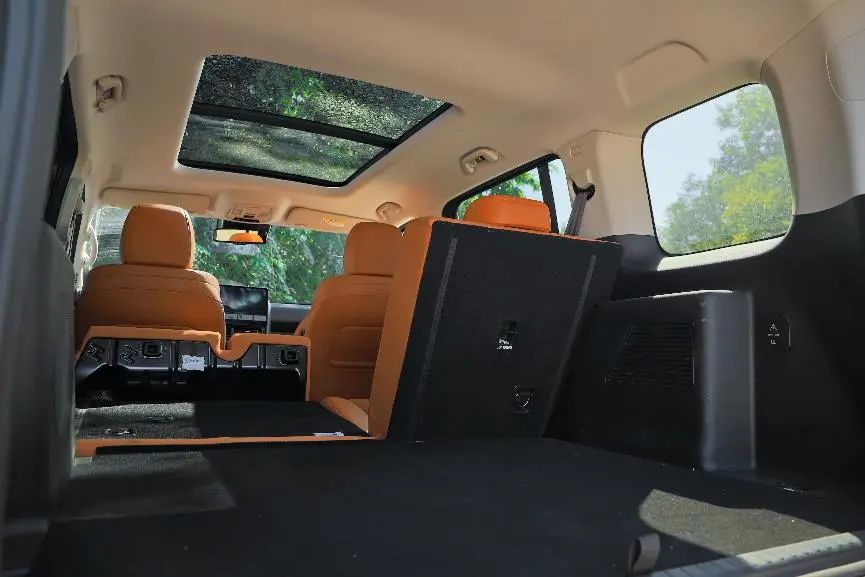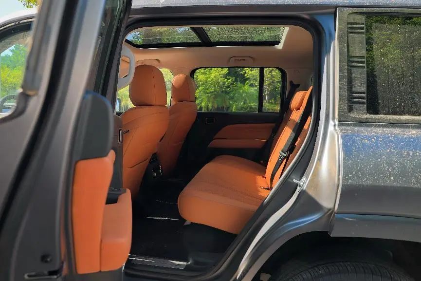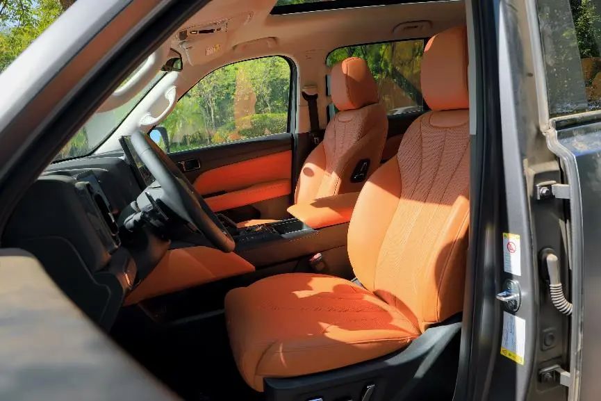 除了硬核的地方,在舒享配置和實用性上也表現(xiàn)優(yōu)異。首先,車內(nèi)座椅都比較寬大,填充物足夠柔軟舒適,前排座椅提供9擋加熱可在34℃—42℃進行調(diào)節(jié),座椅通風也支持多檔可調(diào),高配車型還提供8點式座椅按摩、老板鍵及后排座椅通風加熱。