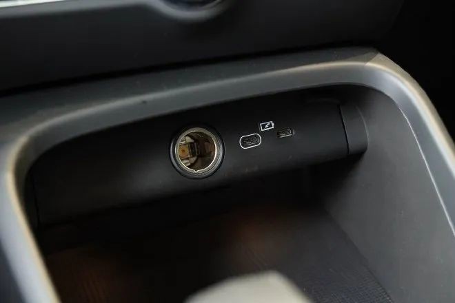 座艙保留了一定數量的功能按鍵,用起來也會很順手。副儀表臺的高度適中,傳統的擋桿設計對于老司機是很友好的。副儀表臺上方還設計了容量不小的儲物 槽、杯架以及12V和手機有線充電接口。