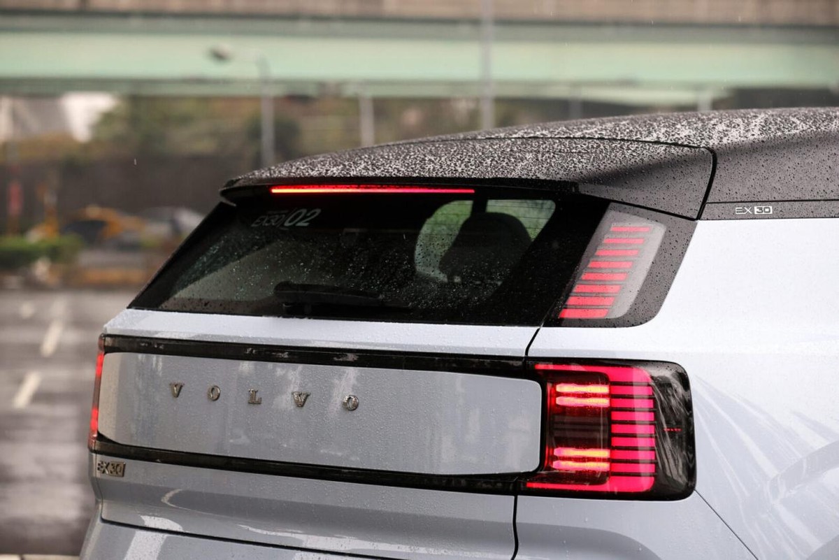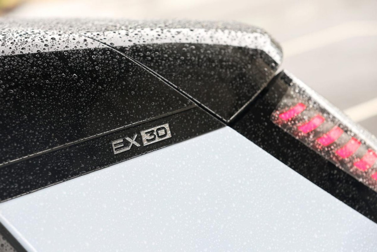 黑色車頂后方兩側鑲嵌有EX30專屬銘牌以標示身份。