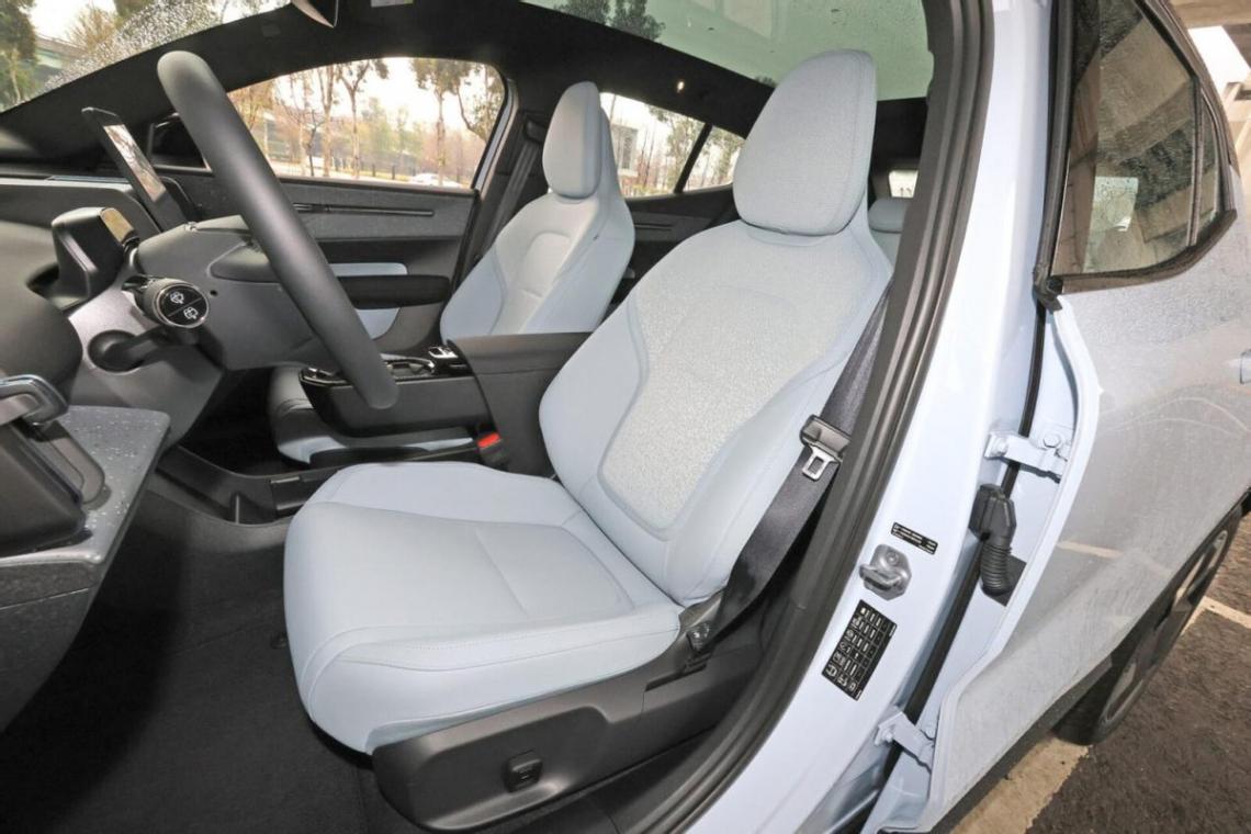 而后座空間表現,畢竟EX30是部4.2米的小SUV,比XC40還要小上一號,因此身高175cm的成人實際乘坐,膝部離前椅背僅約有2指幅的距離,雖不寬裕但也不至于有侷促感,加上約1個拳頭的頭部空間以及良好的椅背傾斜角度,實際坐起來還算舒服。