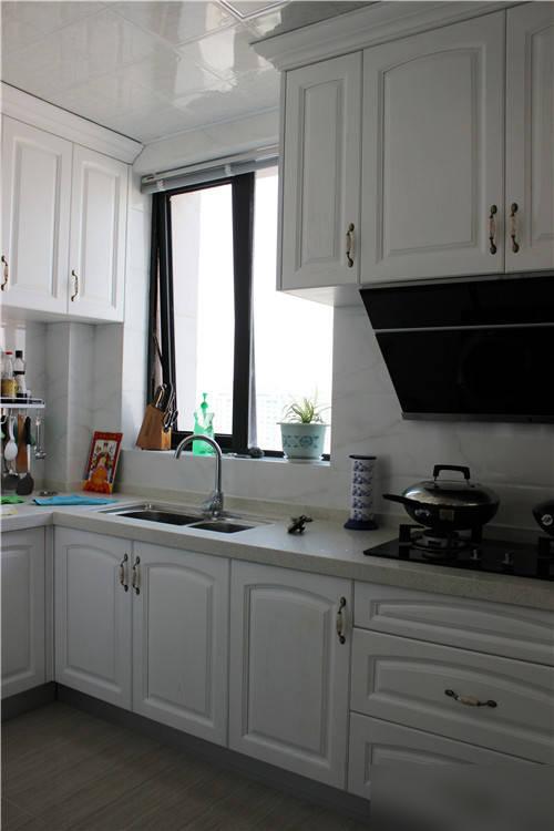 廚房雖然整體面積不大,但通過合理的空間規劃,打造了L型的動線,營造出寬敞感。 再加上廚房的整體設計以簡約為主,整體空間看上去不繁瑣,廚房的門窗位置也會盡可能地去選擇,呈現出更明亮的廚房空間。