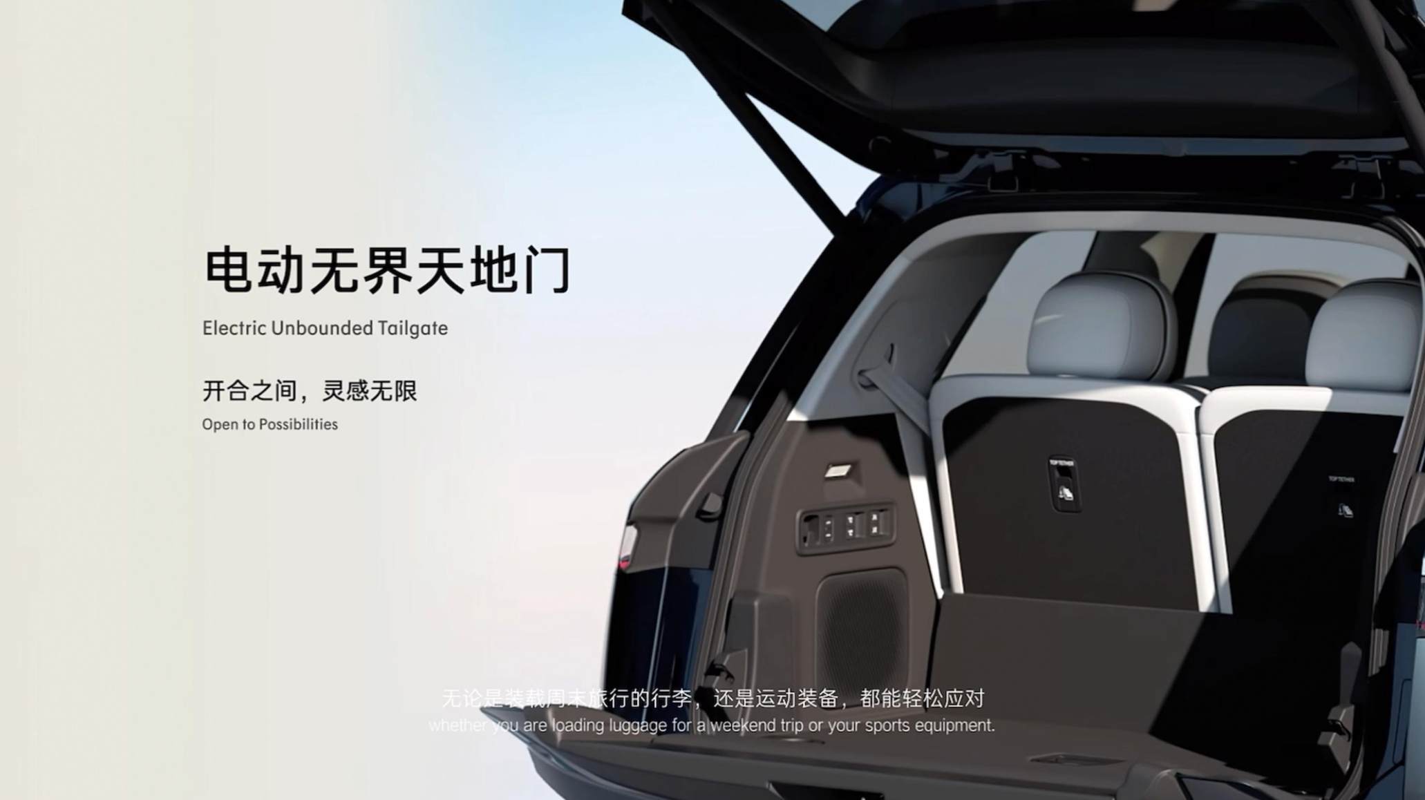 對于大尺寸的車型,通常會使用簡潔的設計,領克900也不例外,值得一提的是新車配備了隱藏式門把手、主動式進氣格柵、懸浮式車頂設計、無框式后視鏡、雙開尾門(俗稱“天地門”),風阻系數控制在0.291Cd,而且側后車窗的面積比較大,后排乘客的開陽感更好。