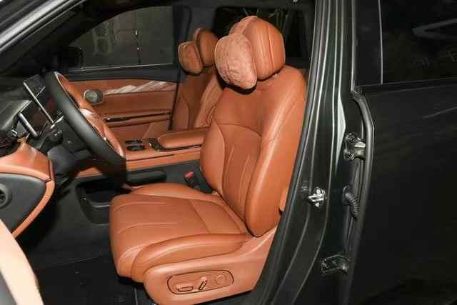 這是一款主打家庭用車的智能SUV,采用2+3的大五座設計,內飾采用NAPPA真皮、超柔水潤皮、麂皮包裹。寬大的車身尺寸注定了這款車的寬敞性。3222mm的車內有效空間,79.6%的得房率,使乘坐舒適寬敞。座椅采用性能穩定不受溫度影響的15mm慢性回彈海綿,內涵8層結構,柔軟舒適。全車座椅均支持電動調節通風加熱按摩后排還有腿托。按摩的功能要特別提一下,這是指壓式按摩,有6種按摩方式,3檔力度和8個穴位可供選擇,真是不錯的設計!支持137度的靠背調節,標配零重力云感腿托,一鍵聯動至舒適位置,后排還有17.3寸的吸頂屏。二排的腿部空間可達1028mm,頭部有1268mm,有足夠充足的活動空間。還支持二排一鍵全平放倒,這時后備箱的空間可達2050L,無論你是搬運大件行李,還是出門旅行裝備,都能放得下。這款車不僅打造了舒適的乘坐空間,而且在靜音方面也是做足了功課。四門和前擋使用雙層夾膠玻璃。后部使用隱私玻璃,AI私人助理提供旅行計劃,生活服務等。不僅隔音降噪,還實現了專屬私密空間。還有72處隔吸音材料及20處聲學隔斷,這些技術的加持,讓這輛車在靜謐方面表現出色。這是一個移動的家,沙發,彩電,冰箱一應俱全+34處儲物空間,應用之物收納,貼心實用。20L容量冰箱,15至20°無極調溫,還可以手機APP 遠程遙控,滿滿的加的感覺。
