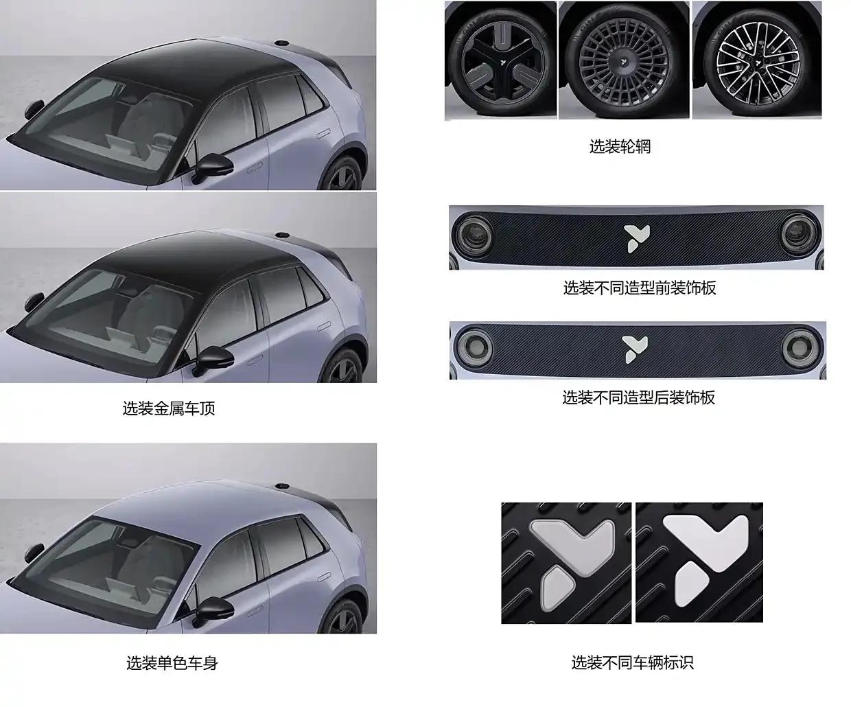 從申報圖來看,螢火蟲外觀極具辨識度,采用仿生學設計理念。車頭三個圓形光環構成三重奏大燈,點亮后獨特醒目;車身側面雙色設計搭配C柱與車頂同色處理,增強了個性化;車尾配備車頂擾流板與后窗雨刷器,三圓尾燈組與前大燈呼應,整車設計協調且獨特。