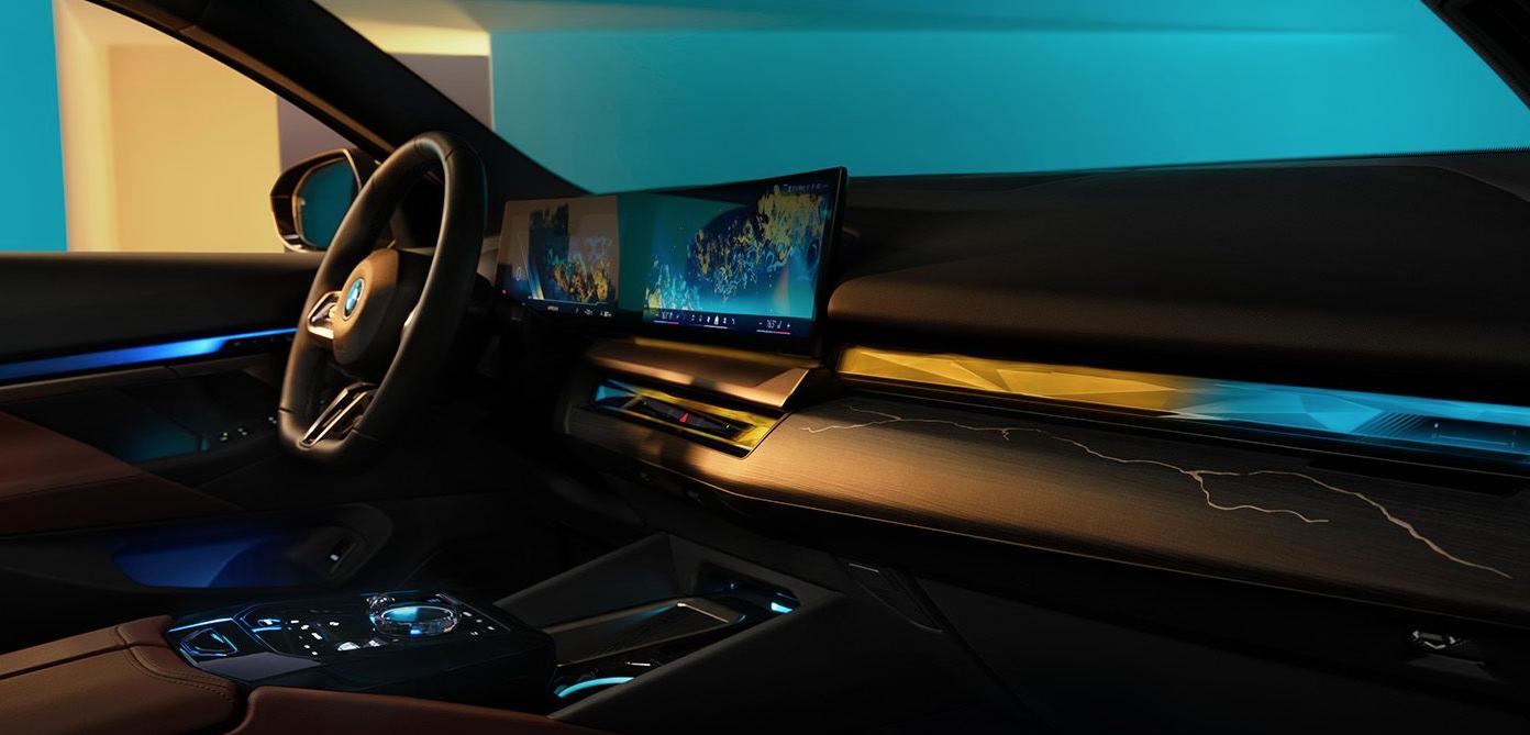 內部設計與上一代車型依然一致,采用的是貫穿樣式大曲屏設計,并且融入了多處水晶材質的豪華車內氛圍燈,很顯檔次感。此外,還擁有對開式的超大中央扶手,超大的全景天幕,也擁有我們熟悉的三幅多功能方向盤。值得一提的是,與上一代車型相比,內部有一項配置是有差異的,那就是采用了第9代的BMW操作系統,而上一代車型是8.5代,不管是車機的流暢度還是應用的豐富程度,全新寶馬i5明顯變得更為出色。這套第9代的操作系統是支持寶馬尊享數字服務的。