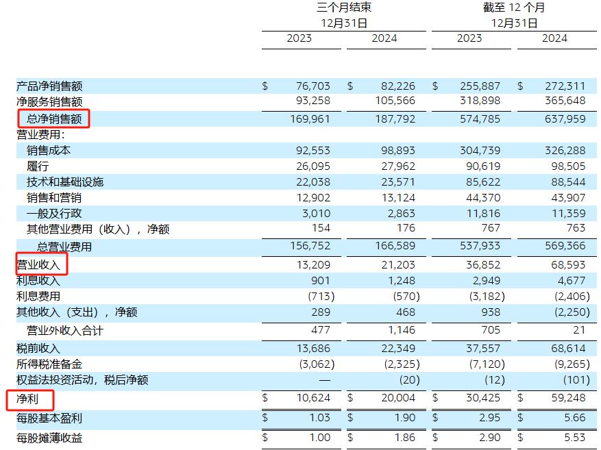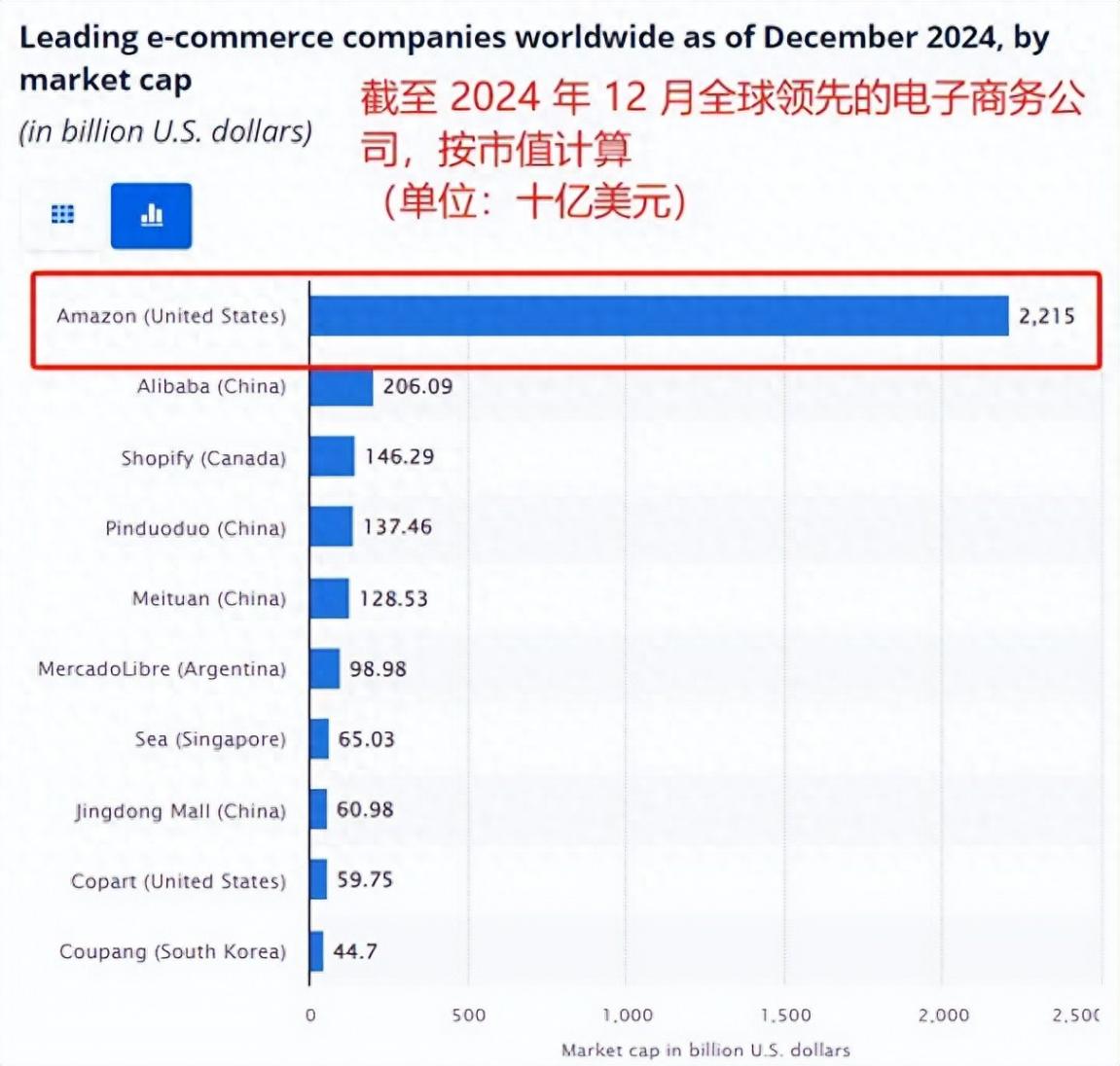 在全球電商企業(yè)中,亞馬遜的霸主地位難以撼動(dòng)。2024年,亞馬遜的電子商務(wù)活動(dòng)收入達(dá)8020億美元,全年?duì)I收6380億美元,凈利潤592億美元,市值超過2萬億美元。不僅如此,其活躍賣家數(shù)量眾多,業(yè)務(wù)覆蓋全球20多個(gè)國際站點(diǎn),同時(shí)覆蓋B2C和B2B業(yè)務(wù)模式,服務(wù)包括逾2億付費(fèi)Prime會(huì)員在內(nèi)的數(shù)億顧客所帶來的全品類、全價(jià)格階段的購買需求。