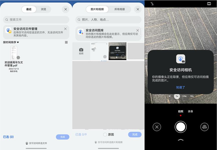 除了原有功能外,鴻蒙原生版企業微信還帶來了一些創新功能,在使用體驗上甚至超越了安卓和iOS版本。比如,在安卓和iOS版本上發送圖片、視頻或文件時,需要授予應用訪問整個圖庫或文件管理的權限,這無疑增加了隱私泄露的風險。而在鴻蒙原生版企業微信上,得益于HarmonyOS NEXT的全新安全訪問機制,應用只能訪問你授權的數據,真正做到“隱私安全,由你掌控”。