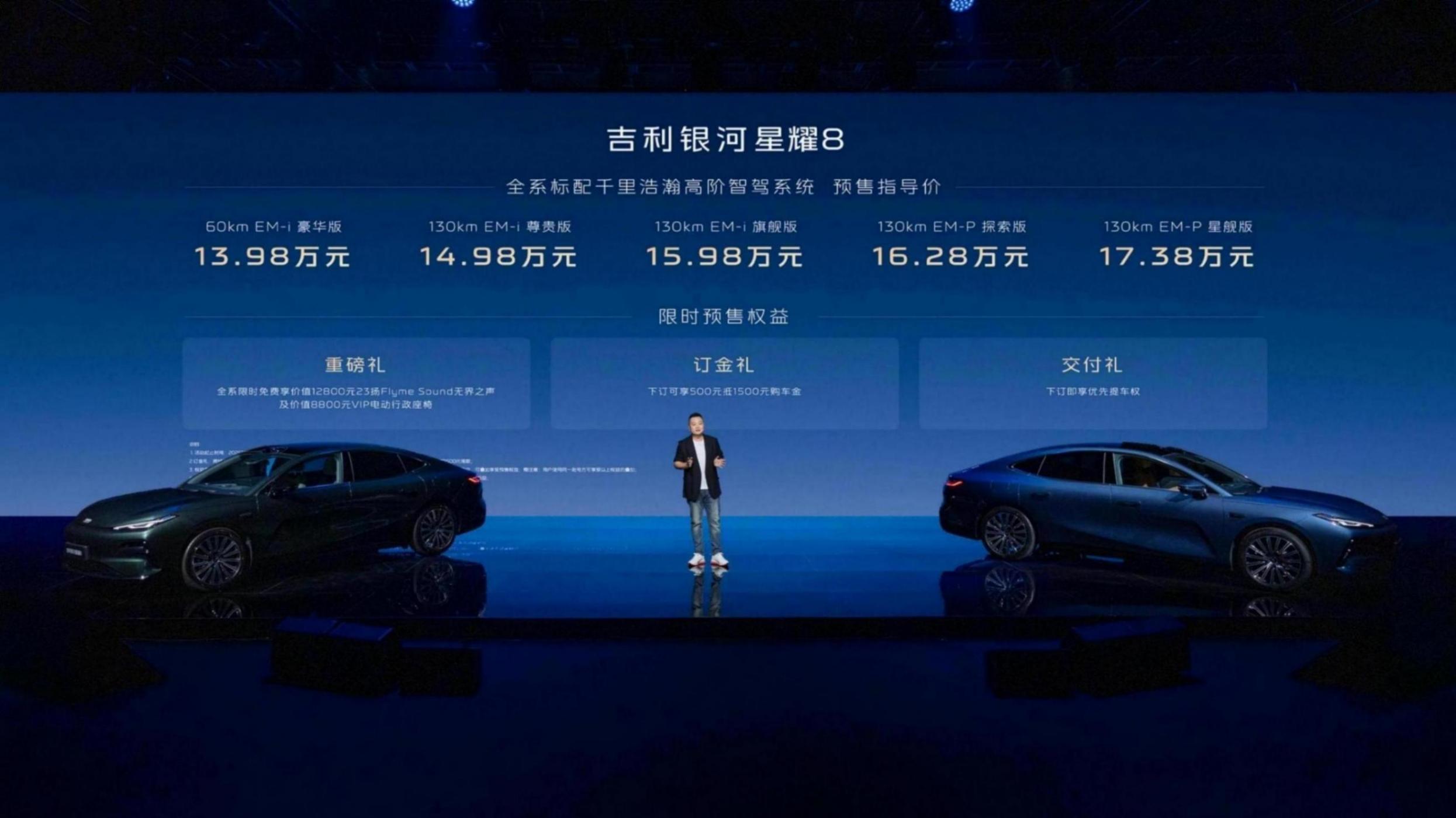 4月10日,星耀8正式開啟預售,新車推出搭載雷神EM-P超級電混和雷神EM-i超級電混的雙動力版本,共計5個版型,預售價13.98萬元-17.38萬元。