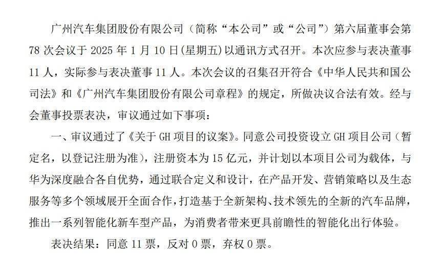 GH項目公司的設立由廣汽集團主導,注冊資本高達15億元人民幣,旨在深度融合廣汽與華為的各自優勢,通過協同定義與設計,在產品創新、市場策略及生態服務等多個層面展開全方位合作。雙方將攜手打造基于前沿架構、技術領先的汽車品牌,并推出一系列智能化新車,以期滿足市場日益增長的多元化需求。