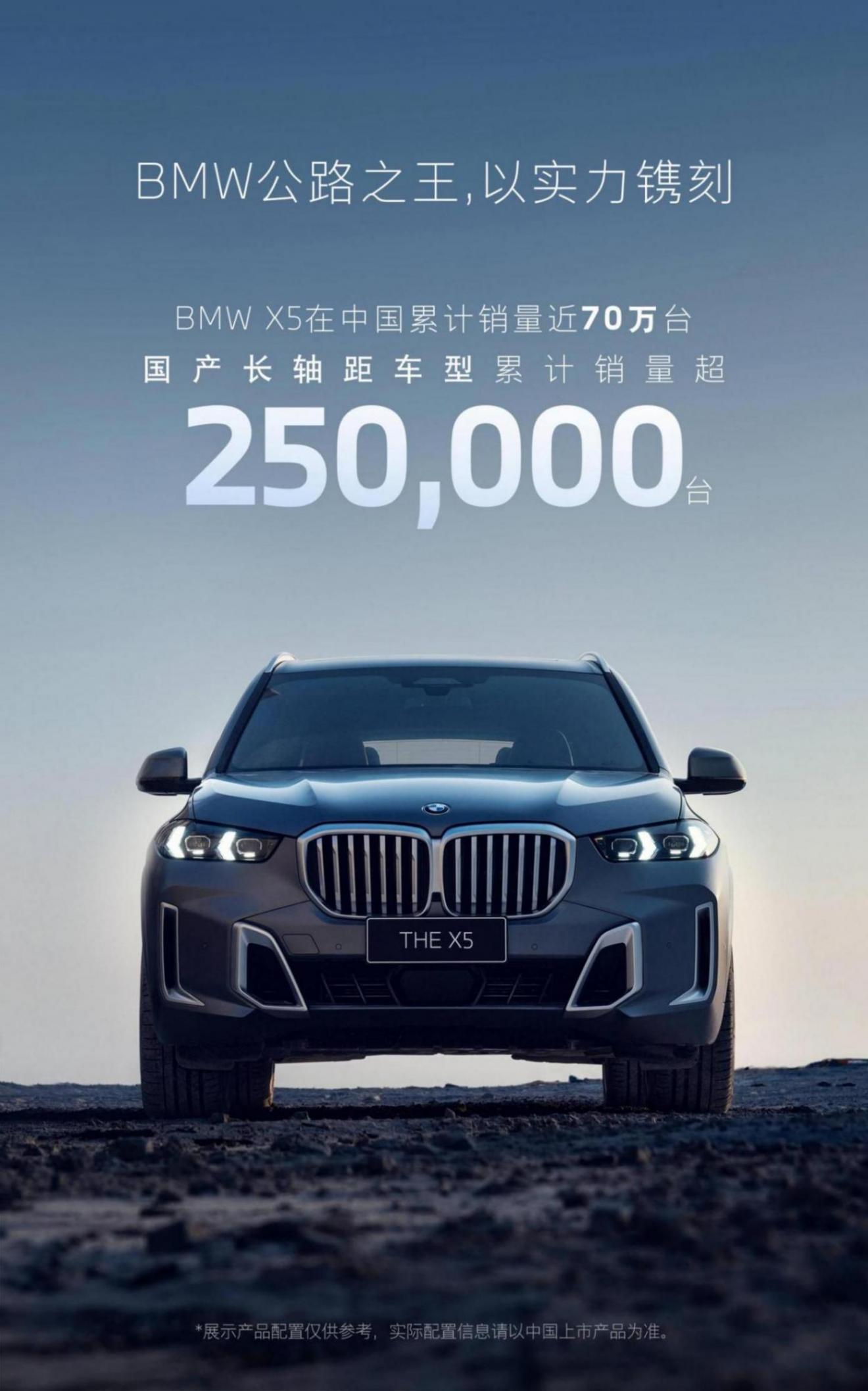 日前,中國在社交媒體上發布了一張海報,內容是慶祝國產化長軸距X5在中國市場累計銷量突破25萬輛。