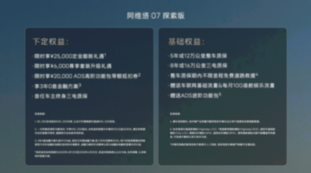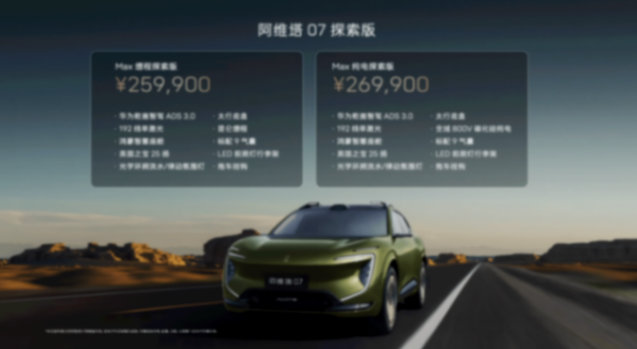 2025年4月12日,07探索版正式上市,新車提供增程與純電兩個車款供選,官方指導價分別為25.99以及26.99萬元。同時,新車還可享限時25000元訂金膨脹、ADS高階智駕包抵扣券、3年免息金融方案等多種禮遇。
