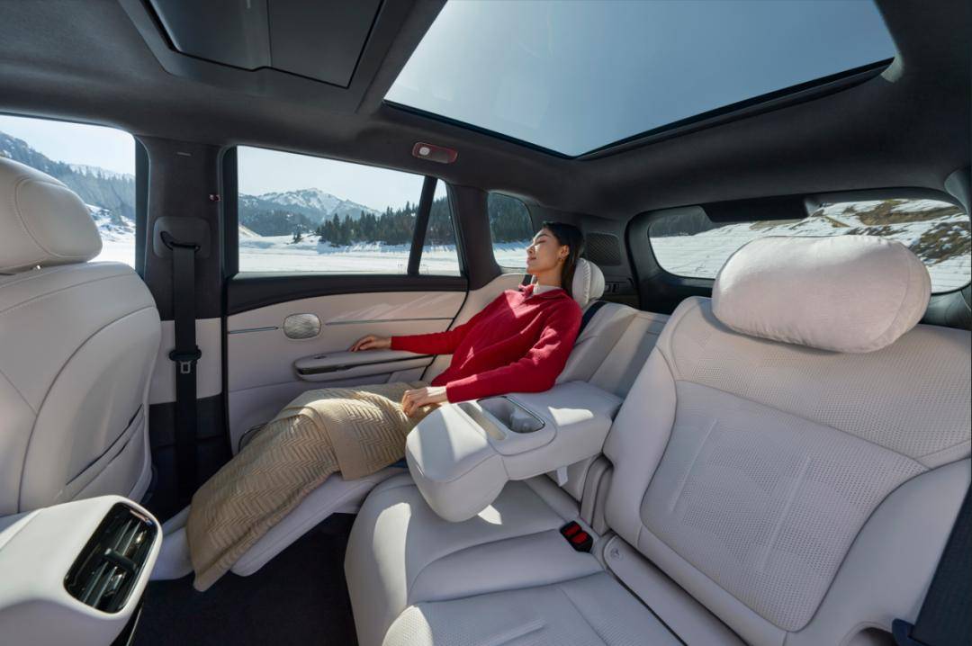 打開車門,大面積的NAPPA真皮和麂皮幾乎環繞了整個坐艙,全車所用皮質面積超過30平米,相當于兩個半標準車位大小,可見之處都能感受到一種家庭特有的暖暖的觸摸感。此外,向往S7給了后排最大的關注,二排座椅靠背最大角度137°,貼近人體最舒適的坐姿,特別是副駕后座,在腿托的助力下可找到最適合自己的躺姿。全車座椅都支持通風按摩加熱。最可貴的是,內飾細節打造處處用心,方便的掛衣鈕(前排和B柱都有),雙充電接口(USB和Type C接口),貼心的觸感燈,不張揚但能點亮情緒的車內氛圍燈,17.3寸的屏頂,基于安全的“電動+機械”雙模開門機構,以及車門內精巧的扶手,處處可以看到令人會心又體貼的匠心巧思。