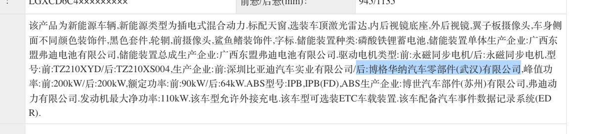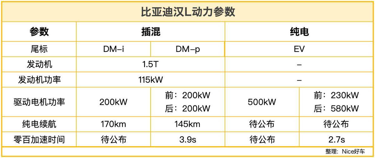 接下來,要講講漢L最重磅的消息——動力!新車提供插混版和純電版可選,前者又分為DM-i和DM-p兩套方案,均由1.5T發動機+驅動電機組成,DM-i搭載200kW單電機,純電續航170km;DM-p則匹配前/后雙200kW電機,純電續航145km,值得提的是DM-p的后電機由博格華納生產,這可是比亞迪車型首次使用非自家生產的驅動電機,百公里加速時間僅3.9s。