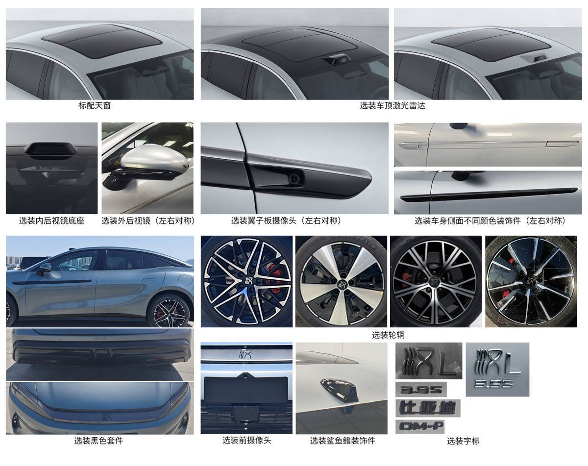 新車的尺寸分別為5050/1960/1505mm,軸距2970mm。從外觀并不能分別出插混版還是純電版,只有車尾的標識能區分。不管是哪種動力形式,都提供車頂激光雷達、各種樣式輪轂(18英寸起步)、車身裝飾等選擇。新車將會用上“天神之眼”高階智駕系統,激光雷達版本或將支持“無圖”城市NOA功能。