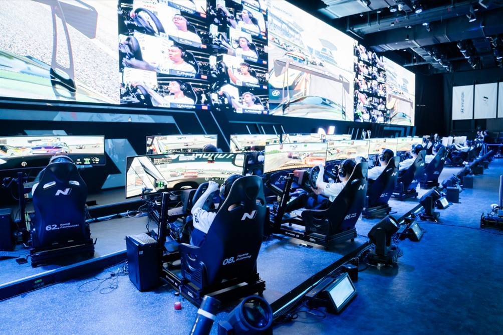 在現代高性能N品牌全球電競統規賽中,選手們使用賽車模擬器在《神力科莎》游戲中駕駛Elantra N TC賽車。該車型采用2.0T渦輪增壓發動機,最大馬力為350Ps,峰值扭矩為450Nm,搭配6速序列變速箱。