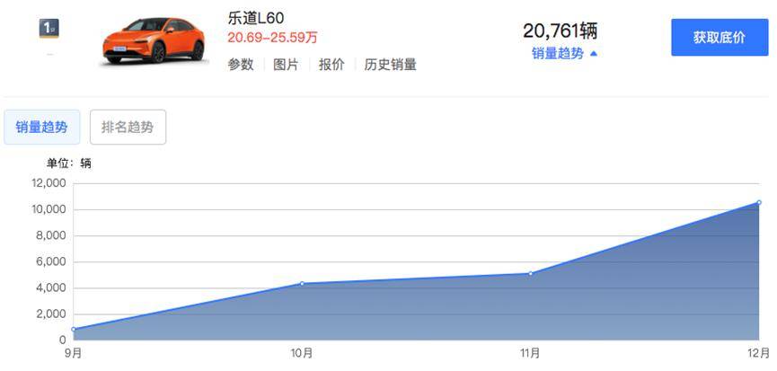 從零售銷量數據來看,自上市至2024年底,樂道L60已累計交付20761輛新車。在10月至12月期間,樂道的銷量分別為4319輛、5082輛和10528輛,呈現出顯著的穩步增長態勢,展現出良好的市場潛力。