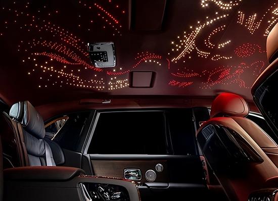 相比外觀,內飾是新車變化的重點。中控臺配備專屬的中國龍圖案,由297塊手工打造的木質飾片貼合而成,盡顯東方格調的奢華氛圍。勞斯萊斯標志性的星空頂由1200多盞光纖燈組成,排列出紅白兩條龍的圖案。后排小桌板鑲嵌了不銹鋼制成的中國生肖日歷,每個生肖都用漢字體現,龍字采用金色設計。同時,新車還采用專屬的Ardent深紅色皮革,座椅頭枕上手工縫制了車主的姓氏。