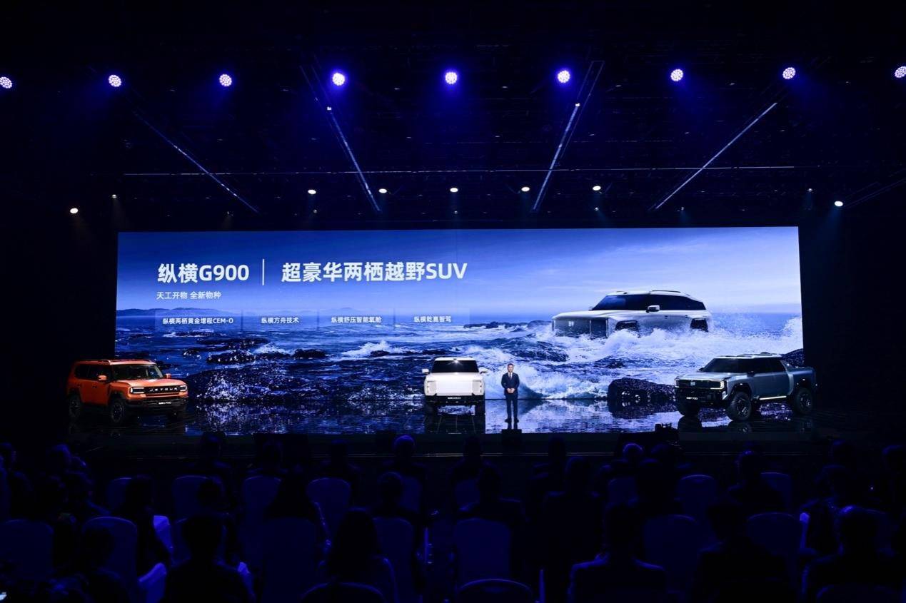 作為全地形豪華越野SUV,縱橫G700搭載鯤鵬超能混動CDM-O系統,并采用非承載式車身,滿足征服山河萬里的探險需求??v橫F700作為全地形豪華多功能皮卡,配備智能全地形模式,可輕松應對復雜路況??v橫G900作為超豪華兩棲越野SUV,搭載縱橫兩棲黃金增程CEM-O系統,可真正實現“穿山越海”的全場景能力,為用戶帶來前所未有的越野體驗。