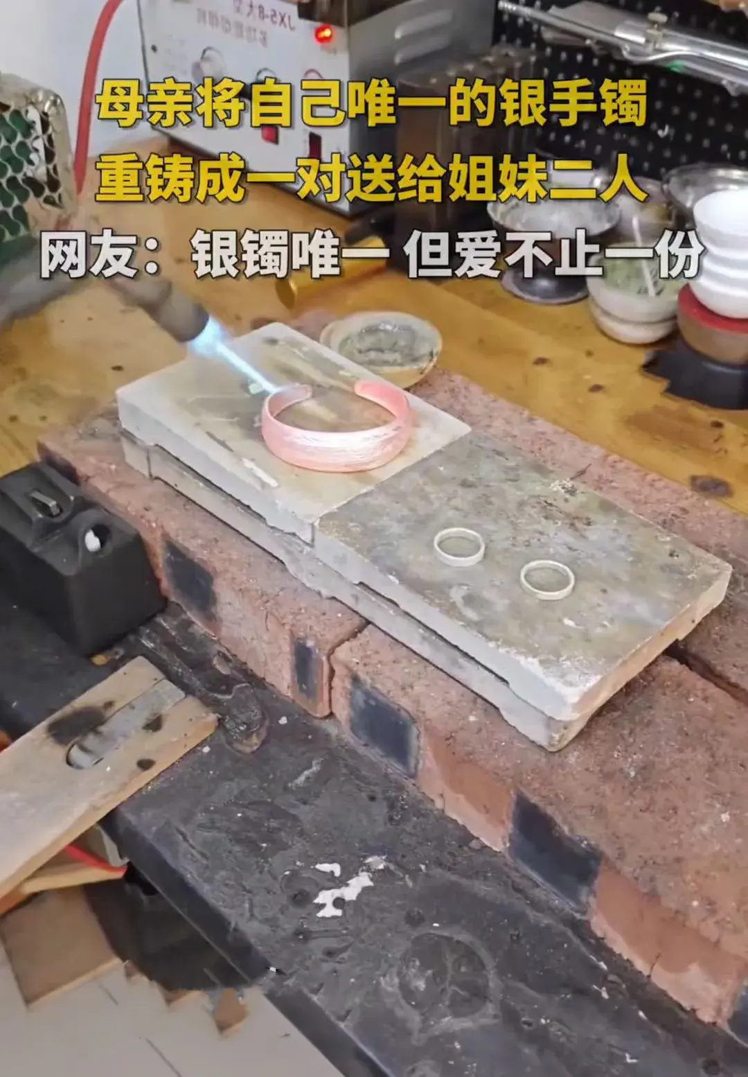 2月26日,遼寧大連的一個家庭里,發(fā)生了一件溫暖而特殊的事情。母親在收拾屋子時,無意中發(fā)現(xiàn)了自己多年未戴的銀鐲。這不僅僅是一個首飾,更是她年輕時的回憶與情感的象征。然而,這位母親并沒有因為自己的懷舊而留下它,她做出了一個更加有意義的決定——將這只銀鐲熔掉,為兩個女兒打造成新的首飾。