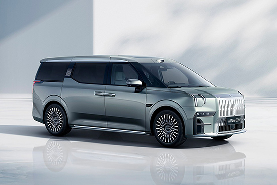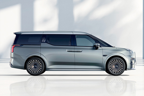 外觀方面,極氪009采用直瀑式鍍鉻格柵設(shè)計,內(nèi)含LED燈組,夜間辨識度極高。側(cè)面為方正的造型設(shè)計,從而提供充足的車內(nèi)乘坐空間。此外,極氪009在側(cè)裙部位同樣增加了鍍鉻裝飾,提升時尚感。