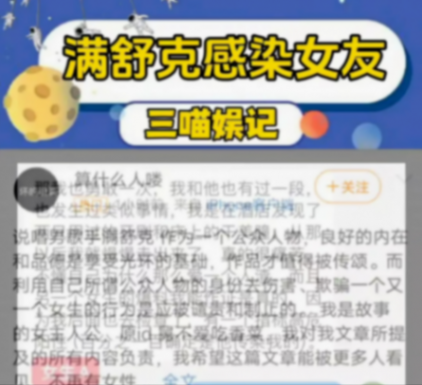 據女友爆料,她在與滿舒克交往期間不幸染病,而男方對此卻毫不負責,甚至在術后對她冷漠無情。這一事件迅速在網絡上擴散,網友紛紛對滿舒克的行為表示譴責。