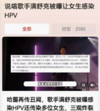 真是太炸裂了!知名嘻哈歌手滿舒克感染HPV還傳染多名女生,網友直呼:九價也防不住!