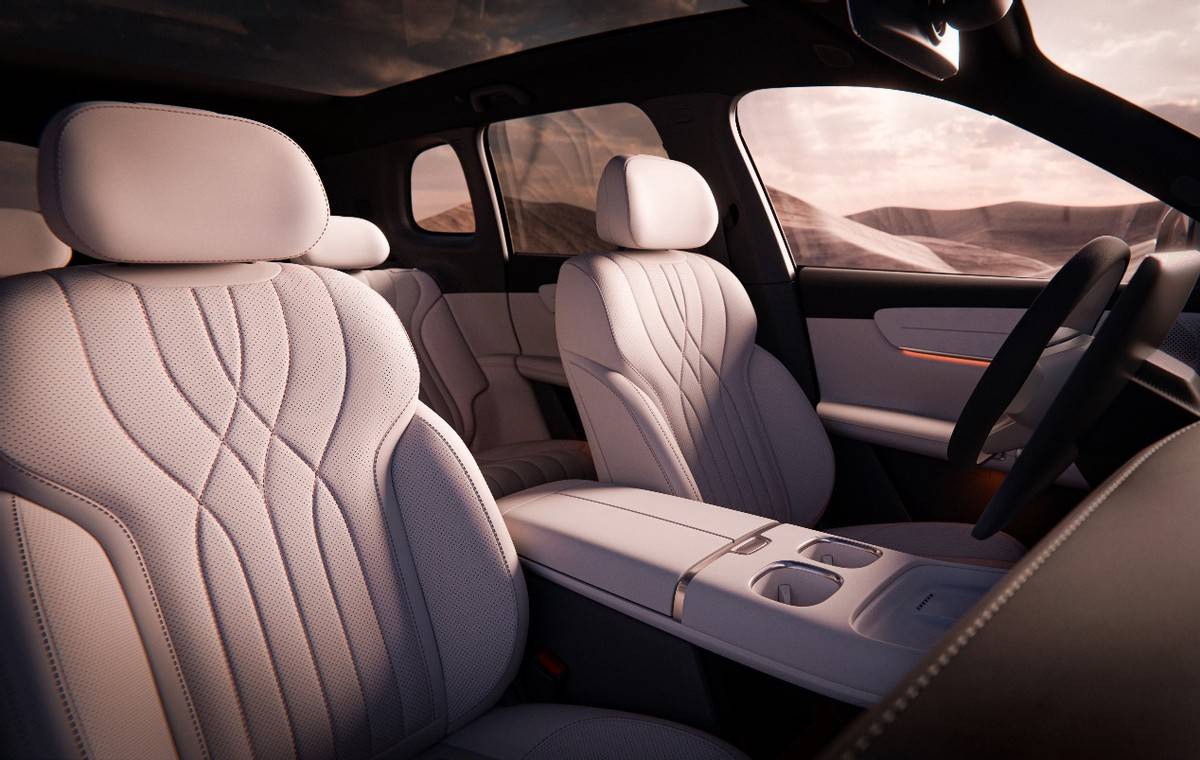 親膚材質的使用,帶來超舒適超享受。車內全部采用環保親膚材質,打造出母嬰級舒適健康座艙。二排270°全軟包環繞,極大提升了乘坐體驗。副駕零重力座椅,同級唯一后排配備通風加熱功能,最大41°電動調節,讓舒服更進一步。靈活變化的空間,隨時根據需要變身女王座、貴妃椅、大床房,并能解鎖葛優躺,結合副駕屏,就是移動多功能廳。內飾使用多處圓潤倒角,無需擔心小孩老人發生磕碰。邁巴赫級別的小頭枕,在該級別更是獨一份。
