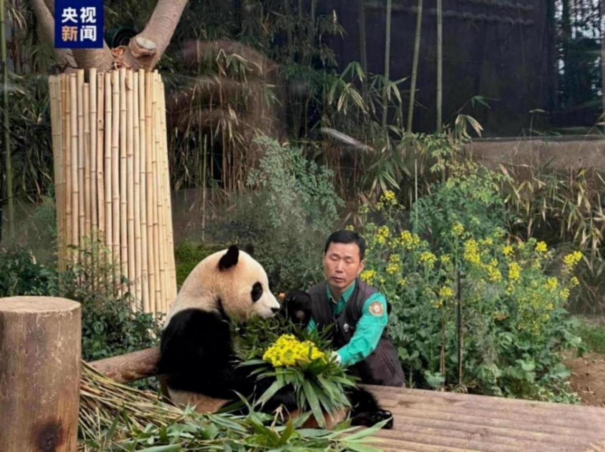 當(dāng)天,“福寶”的飼養(yǎng)員姜哲遠(yuǎn)、宋永寬為福寶準(zhǔn)備了愛心窩頭和竹子制作的“寶家族”全家福,還有寄托著兩位飼養(yǎng)員美好祝福的油菜花束,讓福寶最后一個(gè)與韓國觀眾見面的日子充滿了愛與祝福。