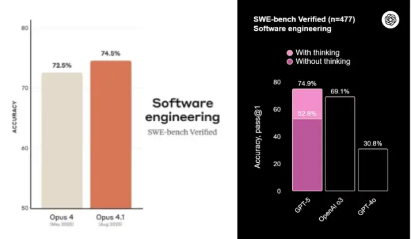 SWE-bench編碼基準測試顯示,GPT-5在編碼性能上略勝Opus 4.1一籌。但基準分數不是全部,我選擇了真實任務來驗證它們的實際表現。