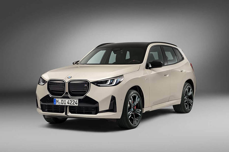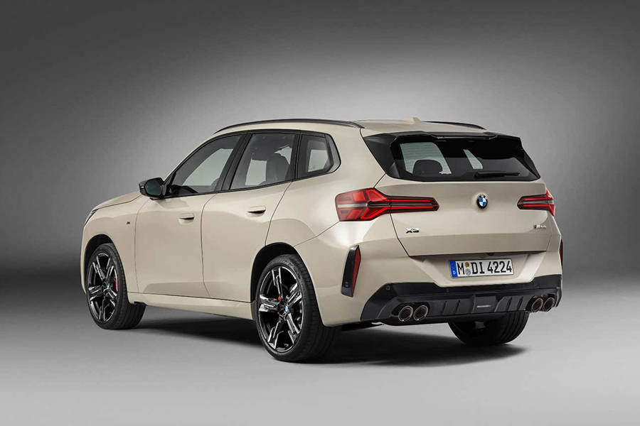 外觀方面,X3 M50采用專屬的M黑化運動格柵,前臉裝飾件也進行了黑化處理,提供7款標配車漆、3款常規選裝車漆。車身尺寸方面,新車長寬高分別為4755/1920/1660mm,軸距為2865mm,新車提供2款輪圈,分別為雙色21英寸1037M型星式輪輻鋁合金輪圈(標配)和黑色21英寸1037M型星式輪輻鋁合金輪圈(5000元選配),輪胎規格為前255/45 R20 105Y XL,后285/40 R20 108Y XL。車輛尾部,后包圍也進行了黑化處理,加入了雙邊共兩出排氣。