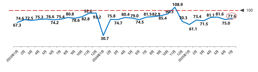 數據顯示:7月汽車消費指數為77.6,較上月上升,預計8月份市場較7月有所回升;7月入店分指數為72.6,較上月略有上升。