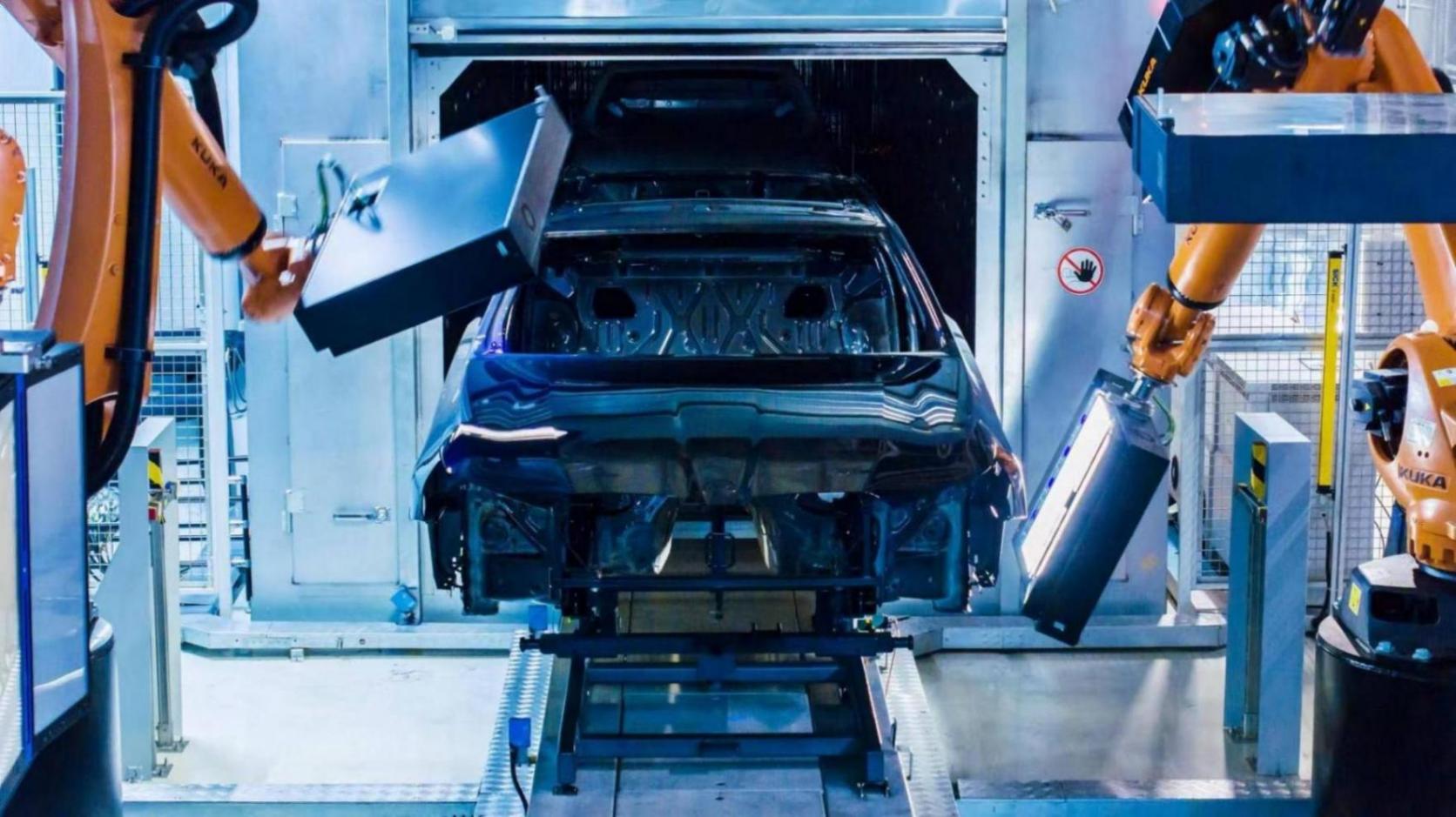 “寶石青”車漆色其實(shí)是一種帶有獨(dú)特光澤的黑色,為了保證最佳的漆面效果,智能漆面檢測(cè)系統(tǒng)就像“鷹眼”捕獵一樣敏銳,機(jī)器人對(duì)車身360度掃描,每秒拍攝3,200張照片,0.01毫米的細(xì)微瑕疵也逃不掉。每臺(tái)車在交付前都會(huì)被拍攝超過(guò)10萬(wàn)張照片,系統(tǒng)能分析光暗變化,及時(shí)處理問(wèn)題。在非生產(chǎn)時(shí)間,AI還能自動(dòng)復(fù)盤當(dāng)天的數(shù)據(jù),為后續(xù)生產(chǎn)做好準(zhǔn)備。