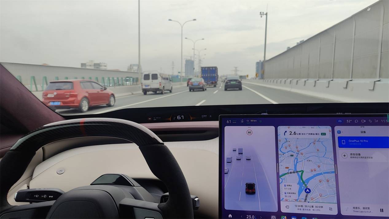 不過智駕依然是它的短板所在。除了交互方面沒有太多可挑剔的地方之外,實際的性能表現依然平庸。譬如集成巡航功能,有時候會在莫名其妙的情境下自動變道,而且對于側后方的感知能力不足,因此策略上會顯得略保守一些。只有對于跟車的車速控制做得還可以。
