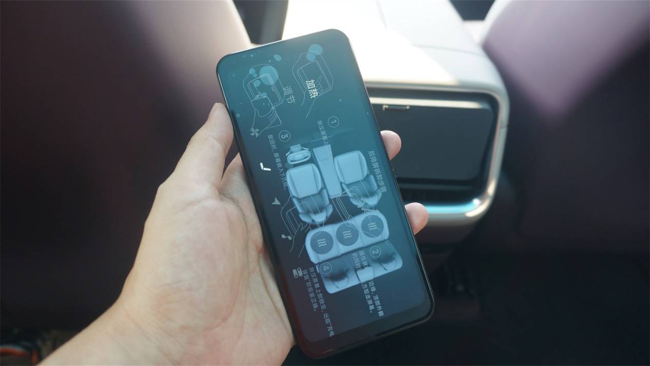 它的確長得像個手機,可惜的是也沒辦法真當成手機用,好在功能還是很豐富的,座椅的通風/加熱/調節、導航、音頻等等都有。拿在手上用的確很方便,但我覺得語音控制不是更方便嗎?而且取放的過程也需要貓著腰了,所以這個設計似乎有點雞肋。