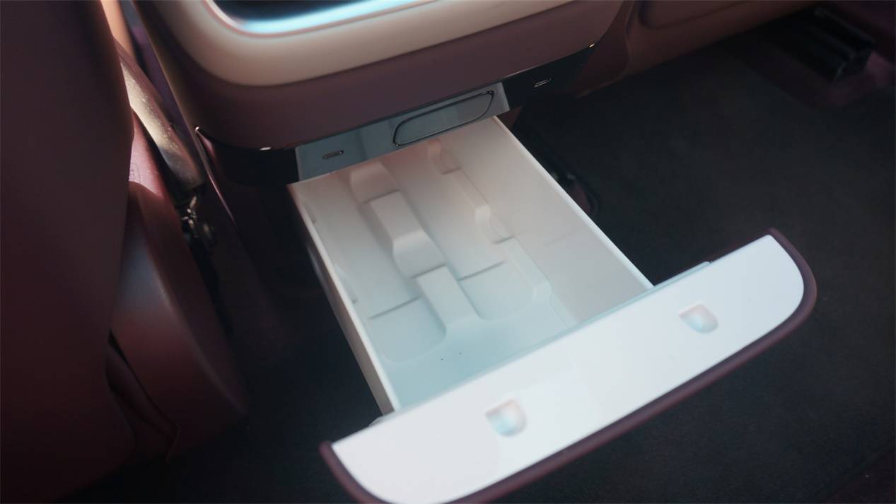 Console下方保留了冷暖箱,然而這是一個需要花費2000軟妹幣的選裝配置,而且和SU7上的一樣,還是半導體的而不是壓縮機的,內部的做工也一般。另外,受到Console造型的影響,它的位置比較靠下,不熟悉的話還挺難注意到。