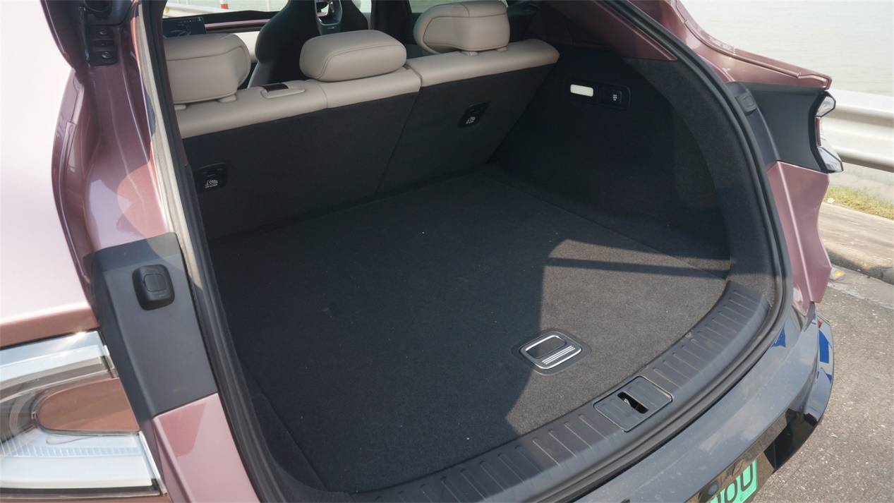 得益于獵裝風格的大溜背造型,尾廂容積進一步提升到了678L,而且地臺下方也隱藏了儲物格,不過深度比較淺,適合放一些諸如野餐墊這樣比較扁平的東西。尾廂側壁上同樣帶有調節后排靠背的電動開關。門檻相比SU7有所降低,開口也更大更方便。不過尾廂進深偏長,塞到最里面的東西不容易夠得著。