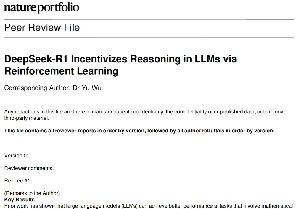 在社論中,《自然》詳細地分析了DeepSeek-R1經歷完整同行評審流程,并登上期刊的價值。